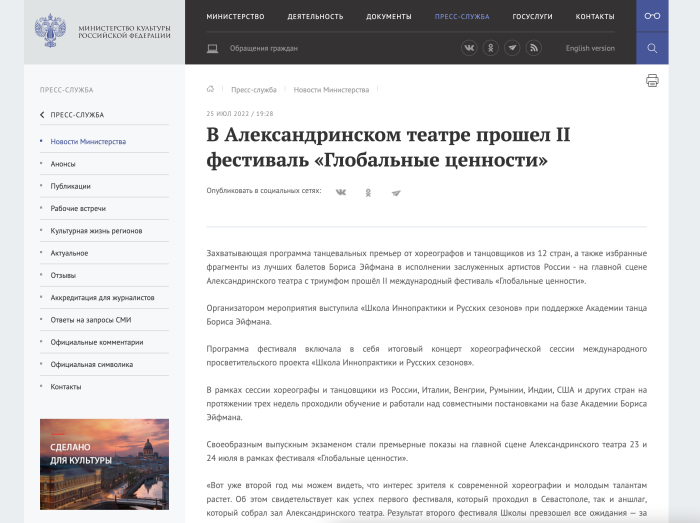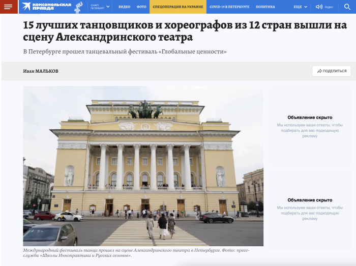 Премьера в Мариинском театре, выставка в Манеже, итоговое выступление иностранных студентов Академии танца Бориса Эйфмана и экспозиция работ Виктора Тихомирова