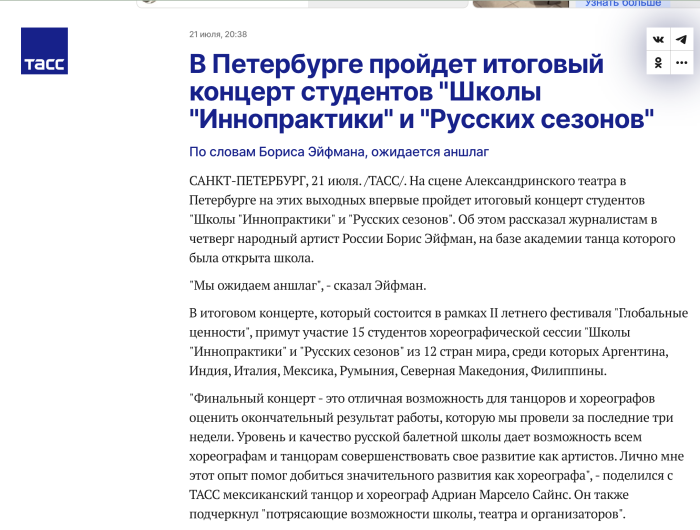 В Петербурге пройдет итоговый концерт студентов “Школы “Иннопрактики” и “Русских сезонов”